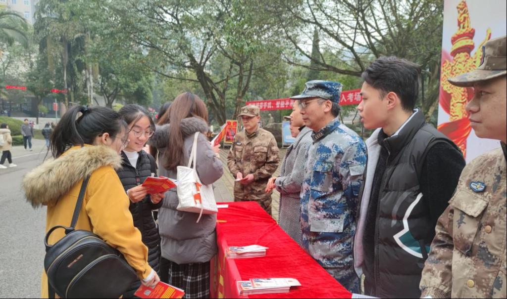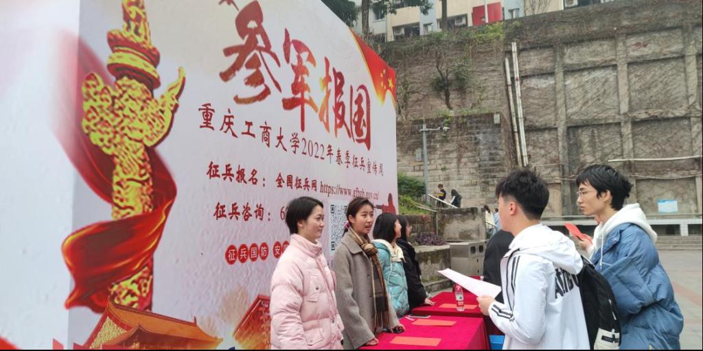 为加强征兵政策宣传,做好2022年春季大学生应征入伍工作,由党委武装部主办,重庆工商大学国防教育协会承办的2022年春季征兵宣传周活动于2021年12月20日至24日在南岸校区、兰花湖片区、江北校区成功开展。